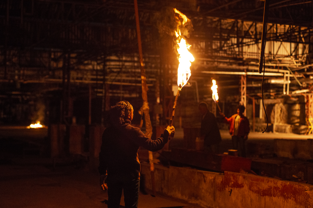 Along the way, she encounters fellow travelers and is guided by a mysterious dog as she crosses a landscape in ruins, devastated by mining, where her destination always seems just out of reach. After an accident, she finds refuge in an abandoned factory, where she encounters a village of workers living in a close-knit community ‒ offering a glimpse of the home she has been searching for.