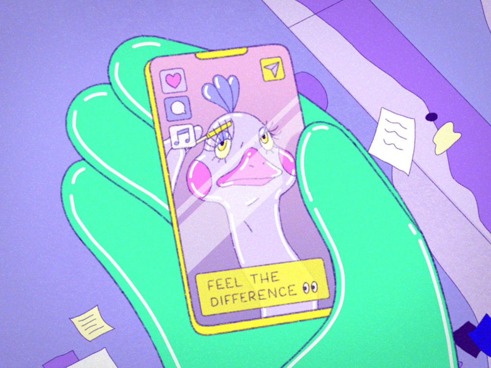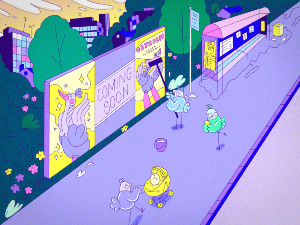 Marie Kenov, born in Basel/Switzerland in 1990, now lives in Lucerne/Switzerland, where she works in the fields of graphic design, illustration and animation. She completed her bachelor’s degree in poster design and visual communication at the National Academy of Art in Sofia/Bulgaria in 2016 – and deepened her knowledge in moving image and film during a second study at the Lucerne University of Applied Sciences and Arts. Her graduation film, SWEET NOTHING (co-direction: Joana Fischer), was shown at numerous festivals, including Annecy and Sundance Film Festivals. OSTRICH is her first short film as sole director.
