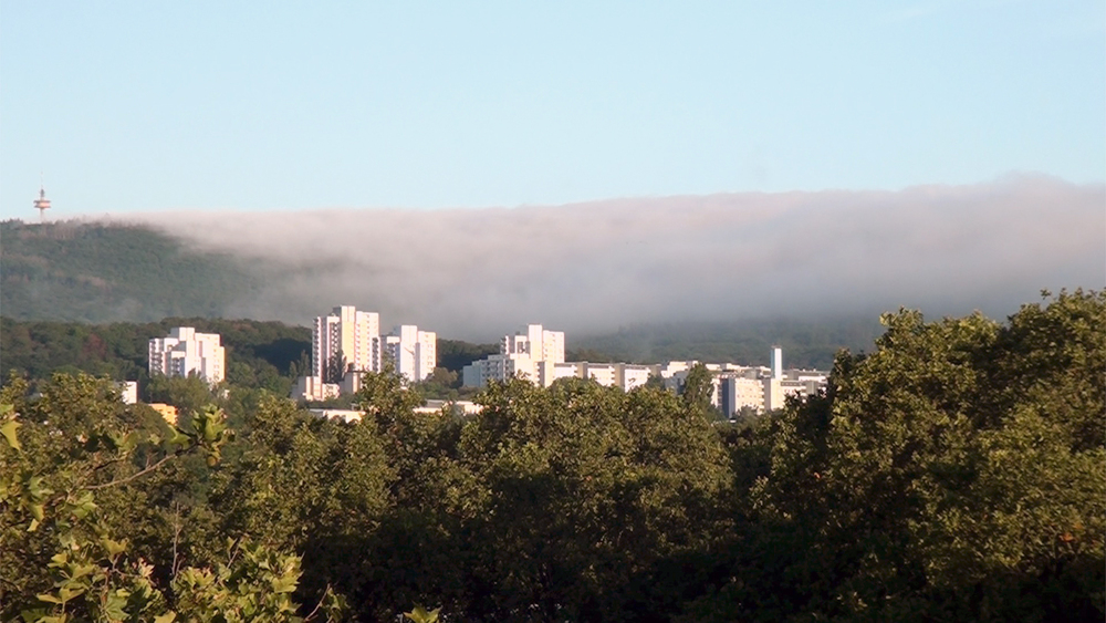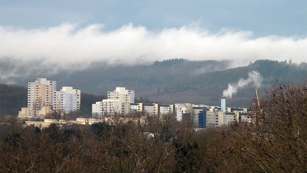 Vor der Kulisse des Taunus erhebt sich eine weiße Stadt: Klarenthal – eine in den 1960er-Jahren geplante Großwohnsiedlung für rund 14.000 Einwohner. Nur Sonne, Wind und Wolken inszenieren sie immer wieder neu.