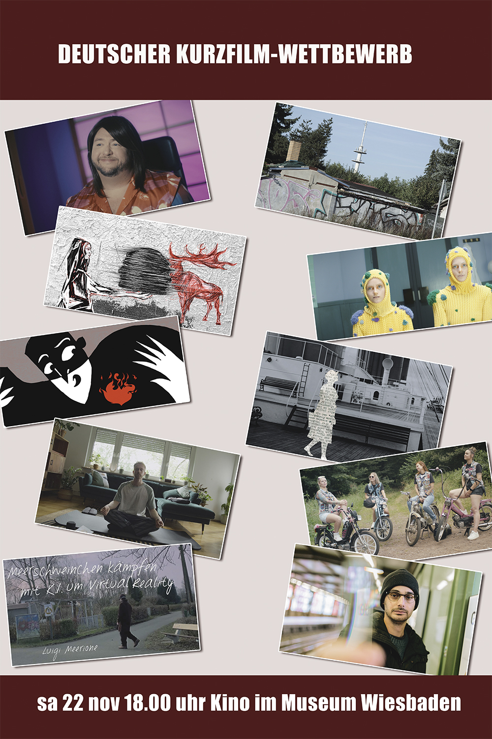 AdresseFriedrich-Ebert-Allee 2 65185 Wiesbaden sa 15.11.2025 15.00 uhr kurzfilmwettbewerbe WIESBADENER JUGENDFILM-WETTBEWERB so 16.11.2025 15.00 uhr youth days LITTLE TROUBLE GIRLS [KAJ TI JE DEKLICA] von Urška DjukićSlowenien/Italien/Serbien/Kroatien 2025 78 Min. slowen. OmU sa 22.11.2025 18.00 uhr kurzfilmwettbewerbe DEUTSCHER KURZFILM-WETTBEWERB MIT ANSCHLIESSENDER PREISVERLEIHUNG